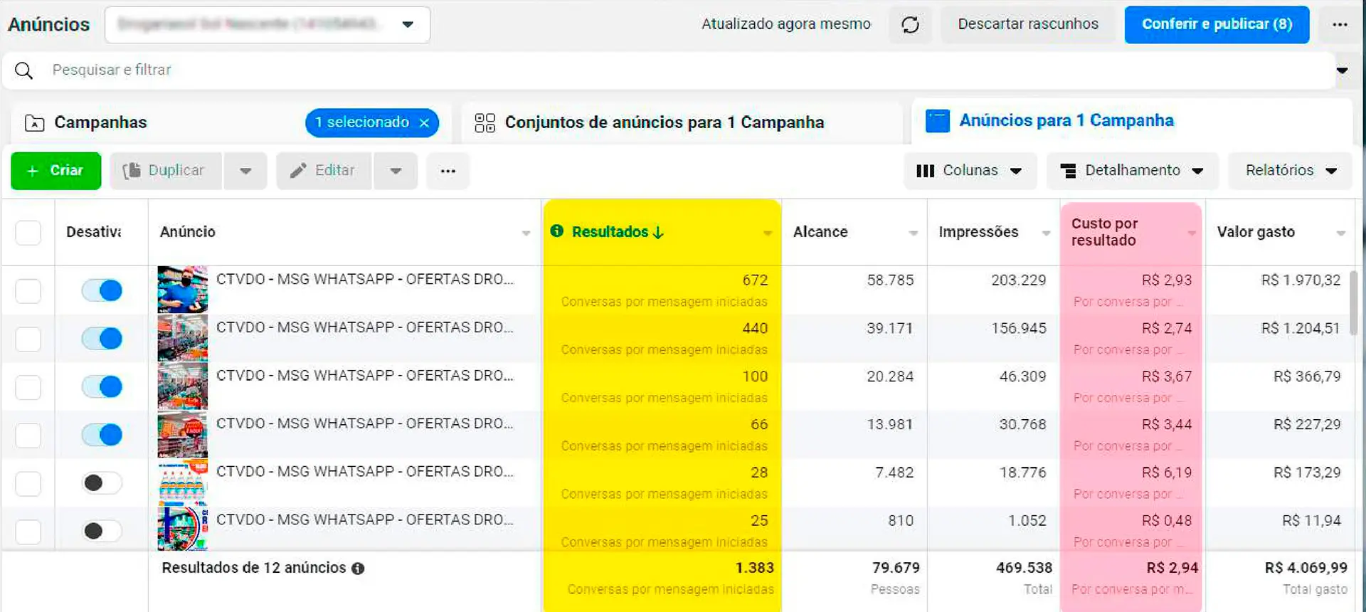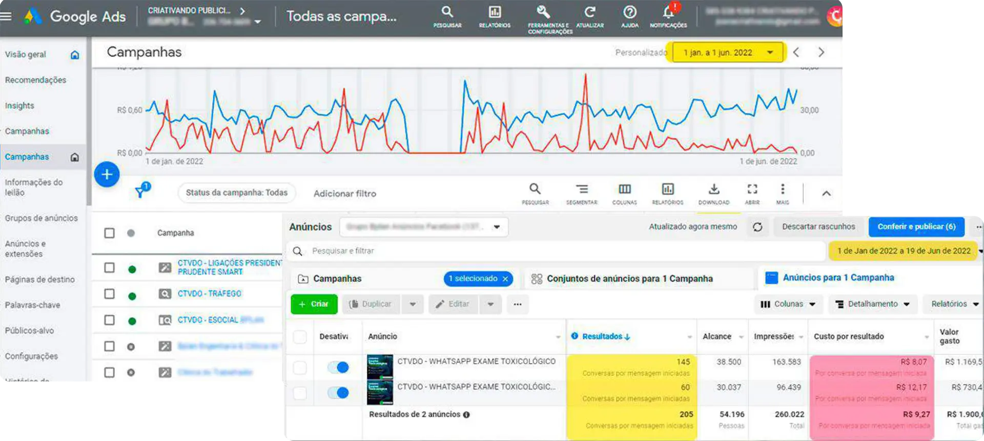 Montamos um processo recorrente de geração de leads, para um assessorado do setor de saúde e medicina ocupacional, com uma aquisição mensal de aproximadamente 176 novos contatos e um CPA abaixo de R$10,00, mesmo sendo um serviço com ticket médio elevado.