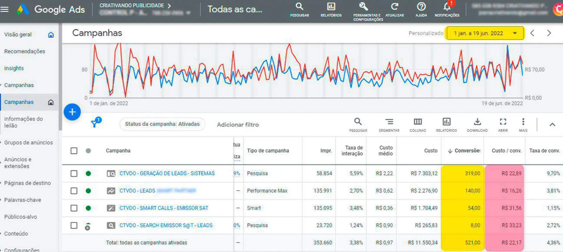 Você não precisa mais ficar no escuro. Tenha acesso ao nosso painel online via Google Data Studio e veja cada centavo investido. Com o nosso painel você poderá acompanhar: