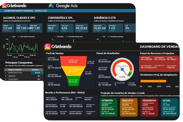 Campanhas profissionais no Google, Facebook, Instagram, TikTok e outras redes. Nossos especialistas são certificados e focam 100% em gerar resultados reais.
